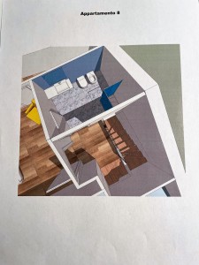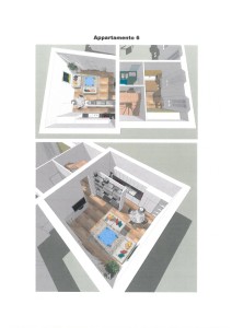 7- appartamento di mq. 102,00 con soppalco composto da soggiorno con parete cottura, disimpegno, camera da letto, bagno e zona a giorno sul soppalco;